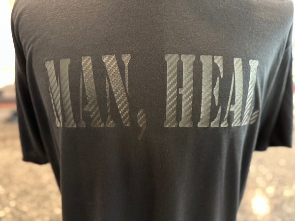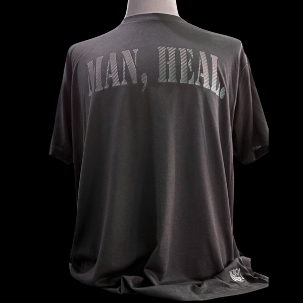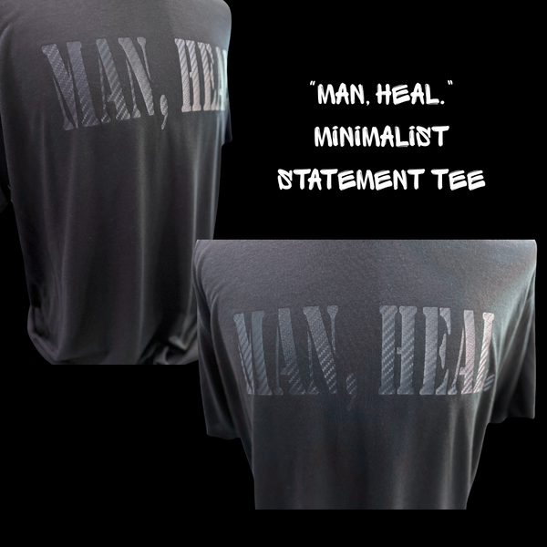 The “MAN, HEAL.” tee was designed with carbon fiber lettering for those rewriting the narrative around strength, vulnerability, and growth. With a clean silhouette and bold text, it invites real conversation in a world that often tells men to stay silent.