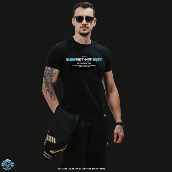 Join the movement and sport a Slingshot Sound Spot Nationwide Tour T-Shirt to show your support for bringing UNITY back to our COMMUNITY, one city at a time. Purchase now!!