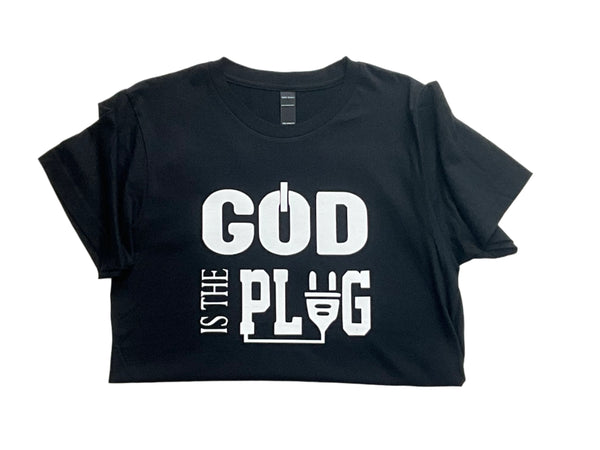 Grab this "God is the Plug" T-Shirt. This shirt not only feels great but also features a powerful message that will inspire and uplift you. Show your faith and fashion sense with this must-have shirt.