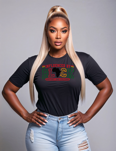 Ignite your love for Black History with this culturally inspired black tee! Show your pride and pay homage to the rich and vibrant culture that has influenced generations.